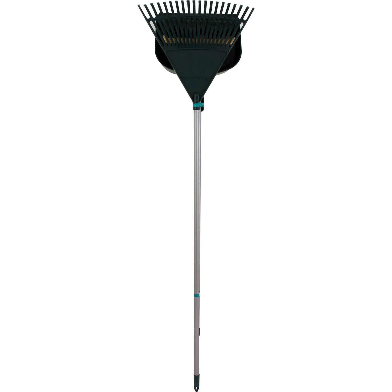 The Garden Tidy Set, includes a stiff pack outdoor broom complete with handle, a large garden rake complete with handle and a jumbo shovel pan.