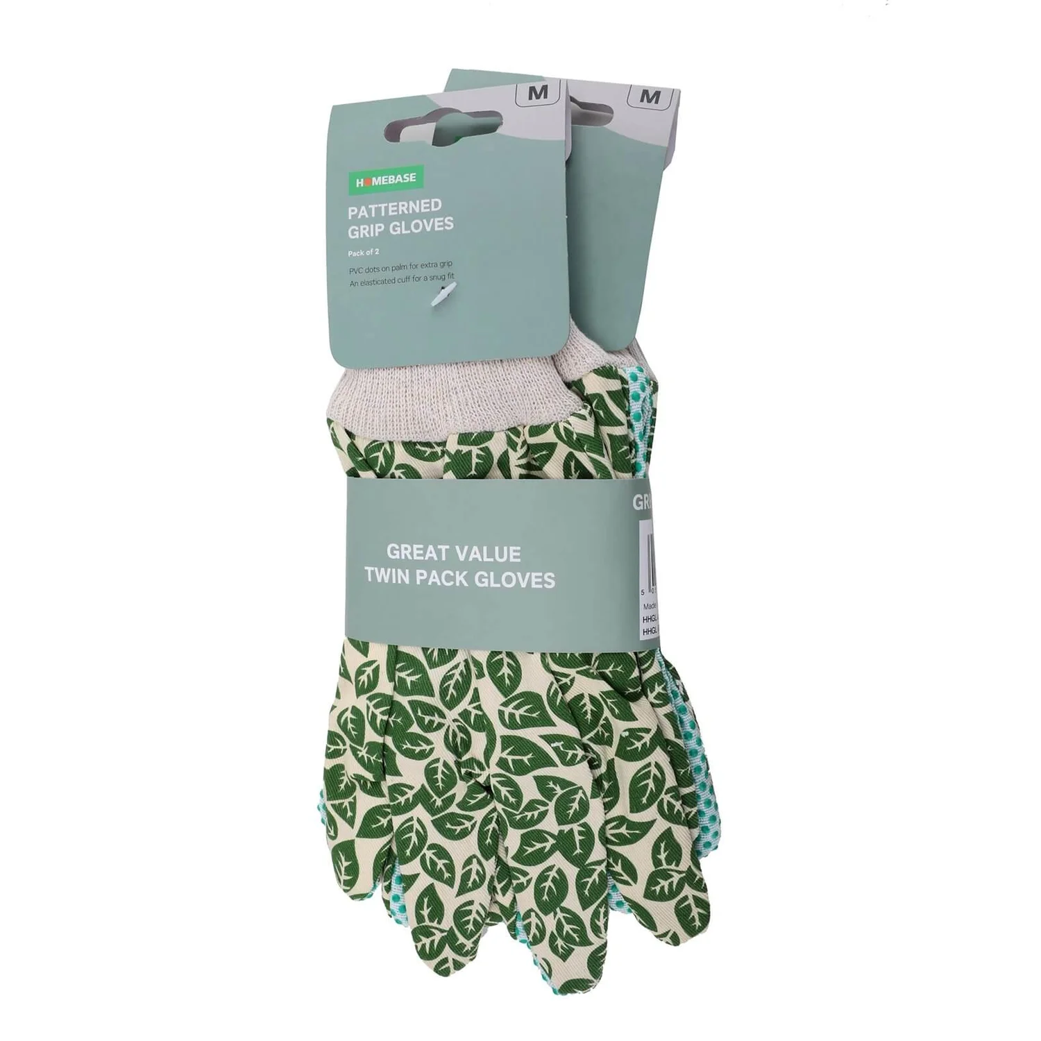 Homebase Patterned Grip Gloves (2 Pack) are designed with an elasticated cuff for a perfect snug fit that keeps debris out.