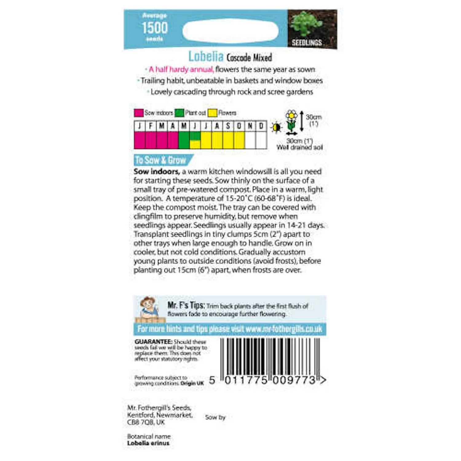 Mr. Fothergill’s Lobelia Cascade Mixed (Lobelia Erinus) Seeds